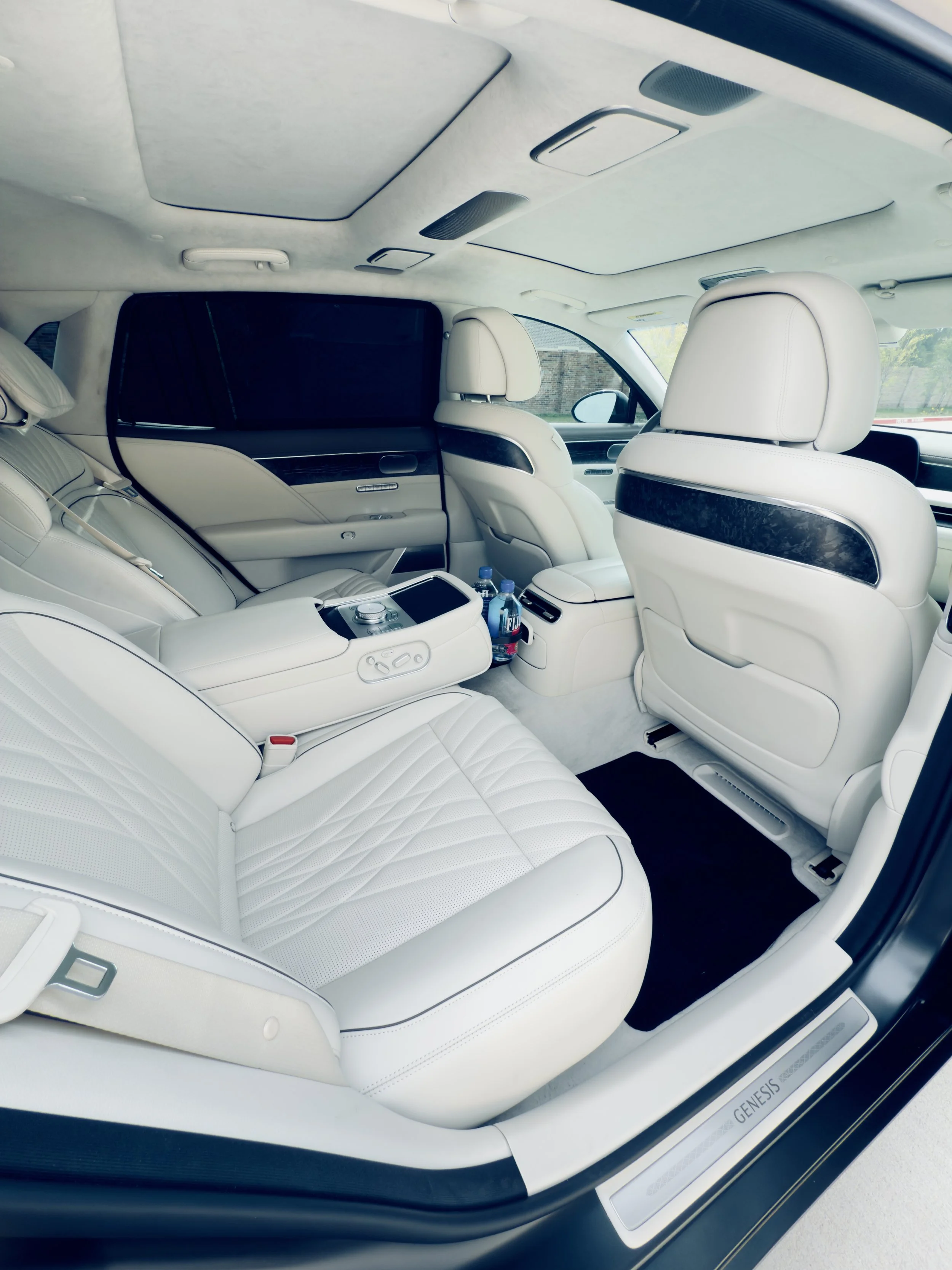 White interior with massagers in the rear seats. Fits 3 passengers with comfort. Back passengers can control the entire vehicle from the rear console.